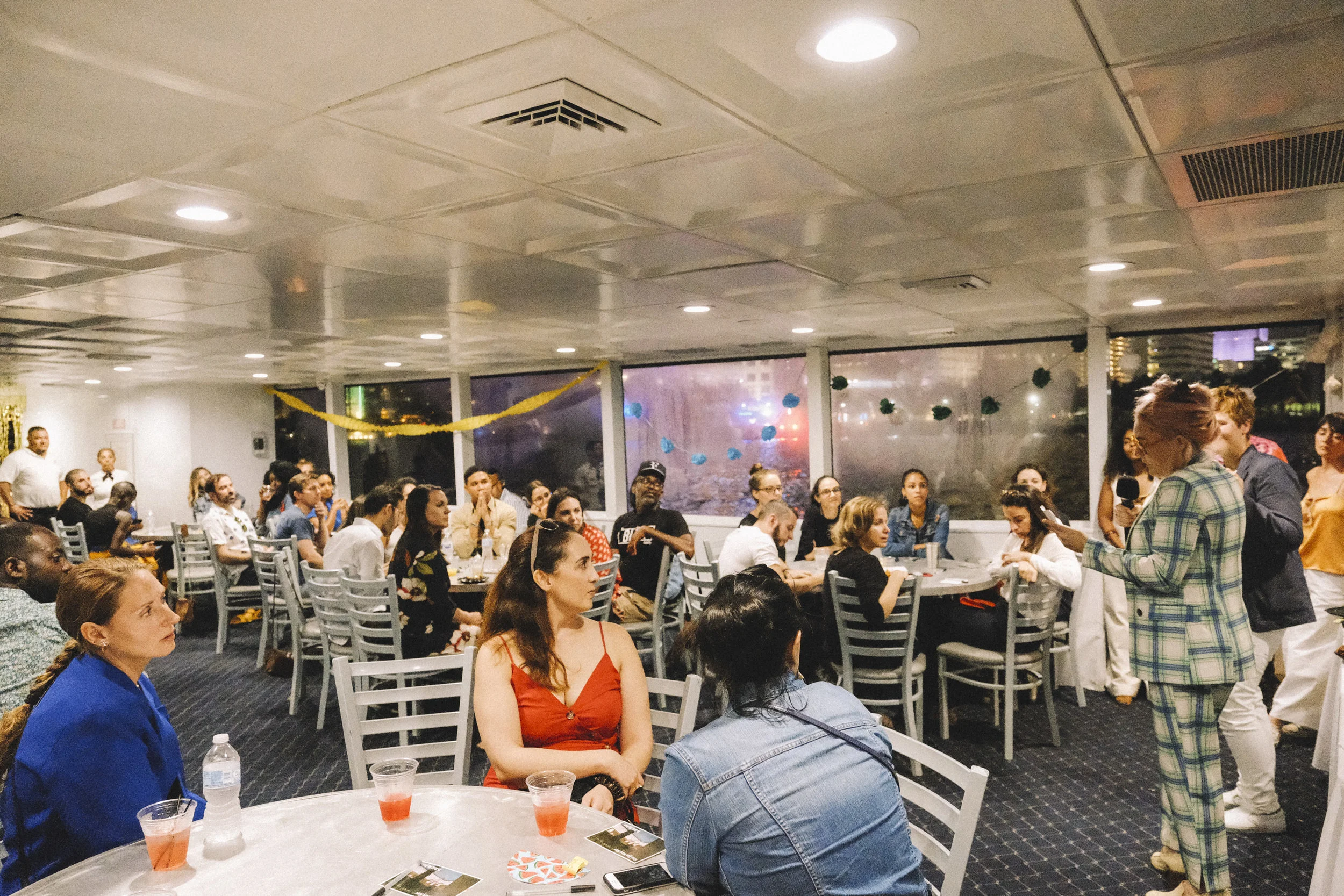On April 12, Commissioner chartered a boat to sail into the sunset with artist Kelly Breez and it was magical. The evening started with Tito’s Handmade Vodka cocktails on Biscayne Bay, followed by a group photo, postcard writing, and the big reveal of the artist’s piece commissioned by and for Commissioner Collectors. Plus, Kelly’s Boat Jams right here.