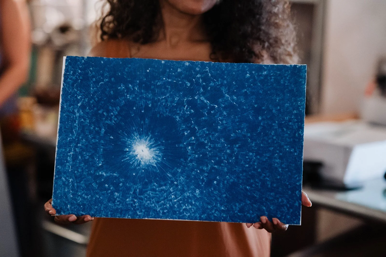 With the moon over the Miami River that night, we gathered at the private home studios of commissioned artist Antonia Wright and partner, collaborator, and multidisciplinary artist Ruben Millares. In our very first reveal of Season Seven, Antonia presented Something more beautiful, a cyanotype on cotton rag created special for our community.